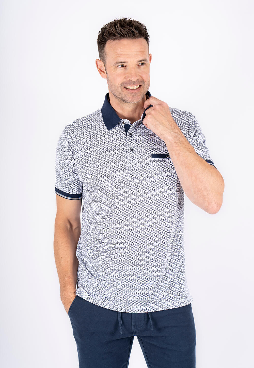 Riott.dk fandt Pre End – Fletcher mønstret polo med brystlomme I hvid/navy fra Pre End i kategorien BIG SIZE. BIG SIZE POLOER. Fars dag. NYHEDER. OrderlyEmails – Recommended Products. POLOER. UDSALG hos PREEND.DK. ID. 27-100475_1050 Klassisk polo med mønster og brystlomme. – Regular fit 70% Cotton 30% Polyester Modellen måler 186 cm. Og bruger str. L